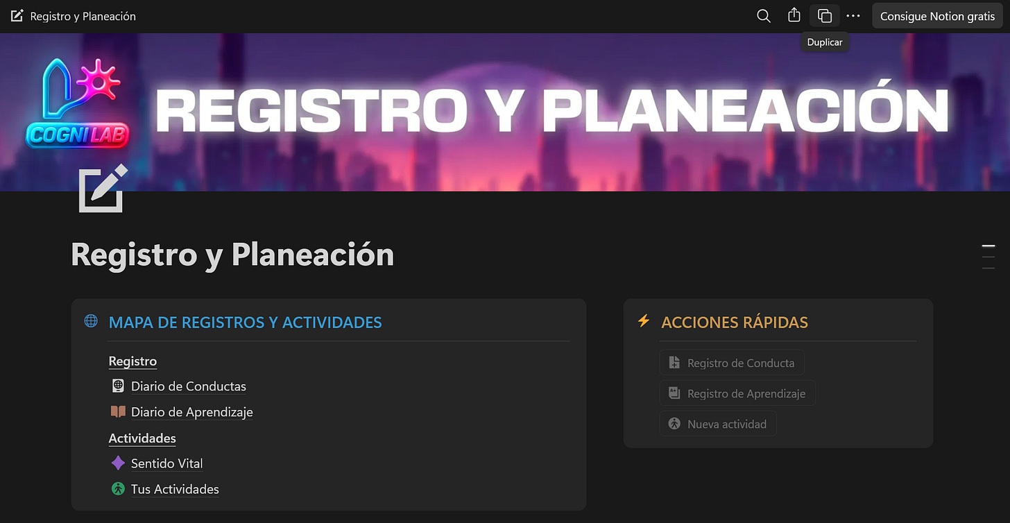 Hemos decidido lanzar una plantilla en Notion que te permite llevar un diario de registros conductuales y además planear tus días acorde a lo verdaderamente importante. Puedes revisar la plantilla aquí.